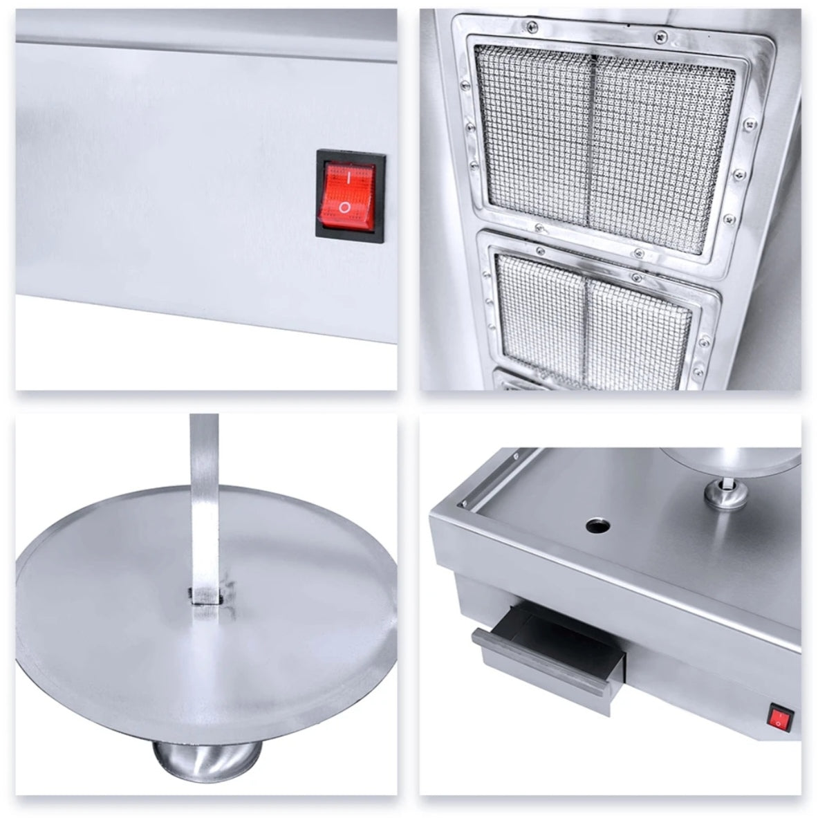 Appareil professionnel pour kebab, équipé de 4 brûleurs gaz indépendants (propane ou butane). La cuisson est homogène et rapide, idéale pour les snacks et restaurants à fort débit. Structure inox robuste, moteur fiable et bac récupérateur de graisses intégré.