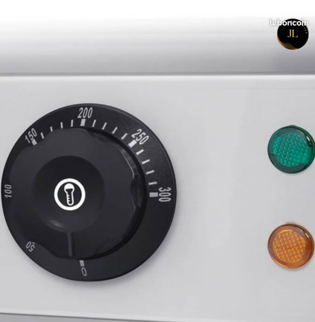 Plancha électrique professionnelle GHN 75RL, conçue pour les cuisines CHR (restaurants, snacks, hôtels, collectivités). Sa plaque en métal 725 × 400 mm, composée de deux tiers lisses et un tiers rainuré, offre une cuisson polyvalente : viandes, poissons, légumes, burgers ou sandwiches. Le corps en acier inoxydable garantit solidité et longévité. Avec sa puissance de 4,4 kW et ses 2 fiches électriques, elle assure une montée rapide en température et une cuisson homogène de +50 °C à +270 °C.